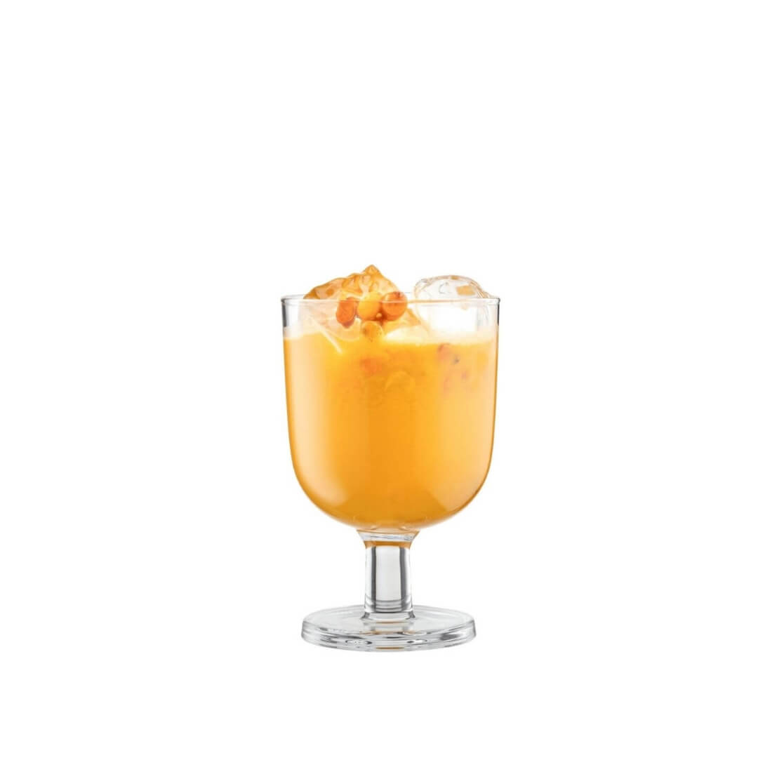 Crush the sea buckthorns in a shaker or in a jar that has a lid. Add other ingredients and lots of ice. Shake well and strain into your favourite glass. Garnish with a few sea buckthorn berries.